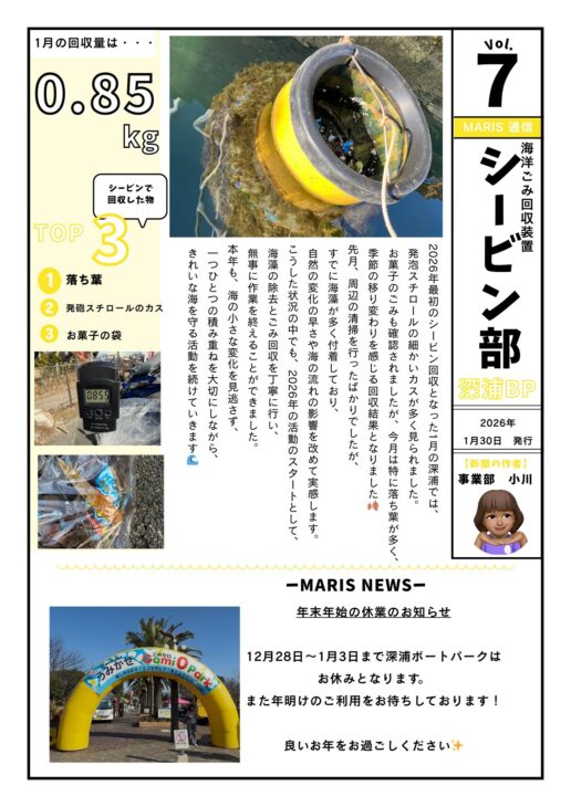 浦賀では、大きな発泡スチロールのごみが確認されましたが、全体としては回収量は少なめで、比較的落ち着いた状況でした!2026年の活動のスタートとして、今年も海の様子を見守りながら、コツコツと回収を続けていきます💪