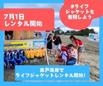 今年から森戸海岸海水浴場でライフジャケットレンタルステーションがスタートしました!