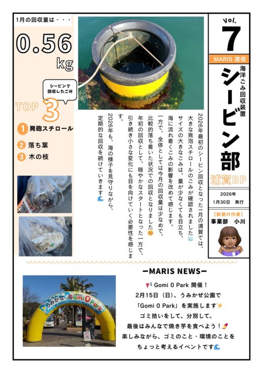 浦賀では、大きな発泡スチロールのごみが確認されましたが、全体としては回収量は少なめで、比較的落ち着いた状況でした!2026年の活動のスタートとして、今年も海の様子を見守りながら、コツコツと回収を続けていきます💪