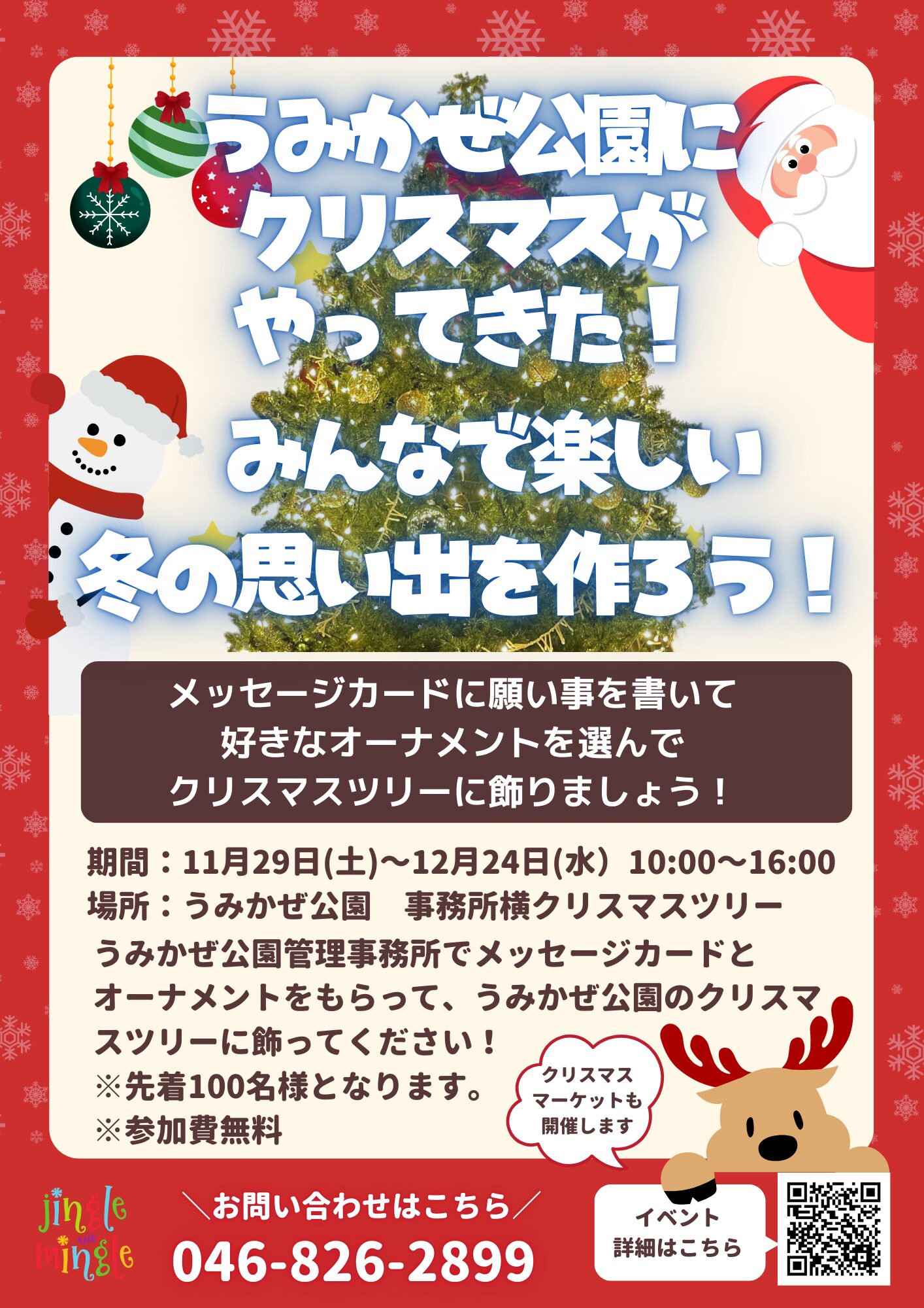 実施期間:11月29日~12月24日 先着100名 飾り付けが無くなり次第終了